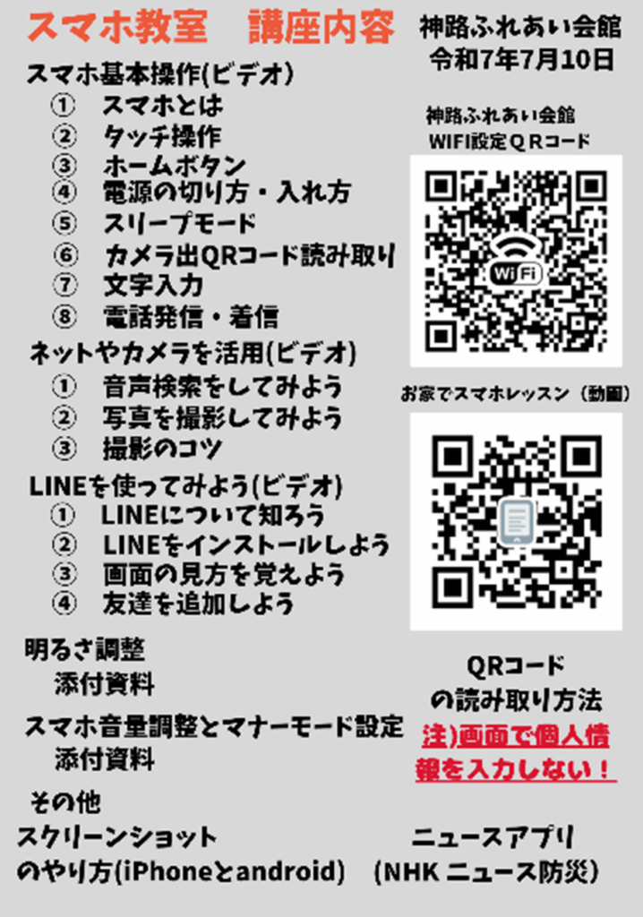 神路地域活動協議会 2023.03.242025.10.24 おおむね、神路小学校校区(東成区大今里2丁目・4丁目、および神路3丁目・4丁目)の安全・安心なまちづくりを目的とした地域住民を中心とした地域自治、自律を推進する団体です。詳細はこちらから ☎ 06-6973-0136✉ info@kamiji-tikatu.sakura.ne.jp 地区の避難所からのお知らせ 福祉関連 News/トピックス ふれあい広場 神路防犯より 地域ボランティア セミナー案内 2025年地域イベント スマホ講座 ★ もしもの時は ★ 神路地区防災計画 消火と救助 市民防災マニュアル 罹災・被災した方へ 電気ガス水道トラブル 応急手当と119番通報 AEDマップ(ふれあい会館) 病気・ケガで困ったとき(救急) 救命ノート 防犯対策と110番通報 特殊詐欺防止 交通安全ハザードマップ 神路防犯ホームページ 大阪府大学生等若者への食費支援事業 2025.10.26 民泊問題 大阪市のサイト参照 2025.10.082025.10.26 防火にご協力ください 8月21日道頓堀火災において消火活動で殉職された消防士の方に、心より哀悼の意を表します。勇敢な行動に深く感謝し、私たちも防火に努めます。 2025.08.26 神路小学校避難所設営訓練 アンケート ダウンロードはこちらから 2025.05.222025.06.24 神路防犯からのお知らせ 防犯啓発メッセージです 2025.05.182025.06.24 2025年度(令和7年度地域行事) 神路地域活動協議会・神路連合振興町会の2025年度の行事予定および活動案内 ダウウンロードはこちらから 2025.03.172025.07.02
